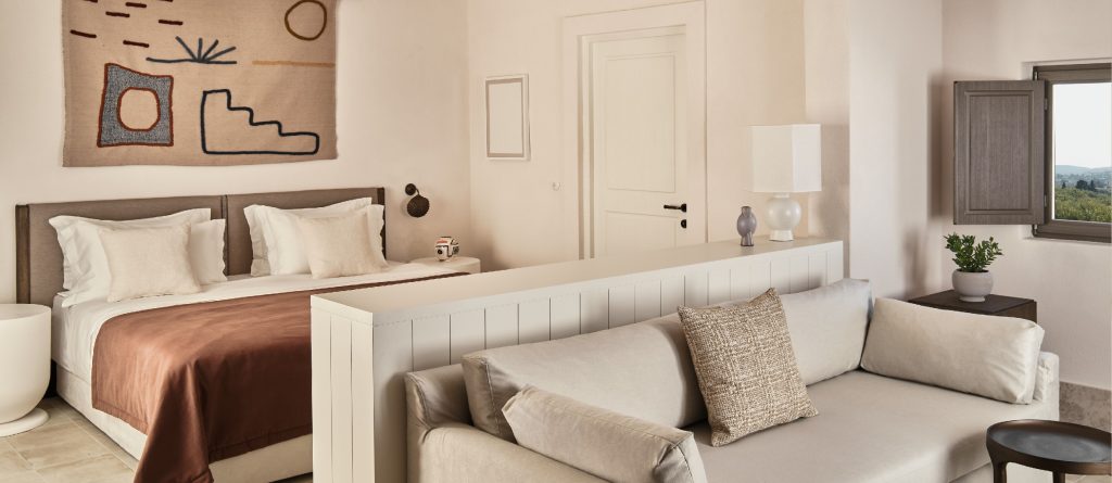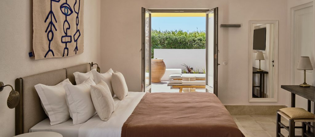 Guided by the Eliopoulos’ unique hospitality experience and extensive knowledge of this region, the hotel is envisioned as the first luxury gateway on this hitherto unexplored island; a place where unspoiled natural beauty and the slow rhythms of Cycladic life prevail. The result is an all-suite property that presents an authentic and organic Greek experience.