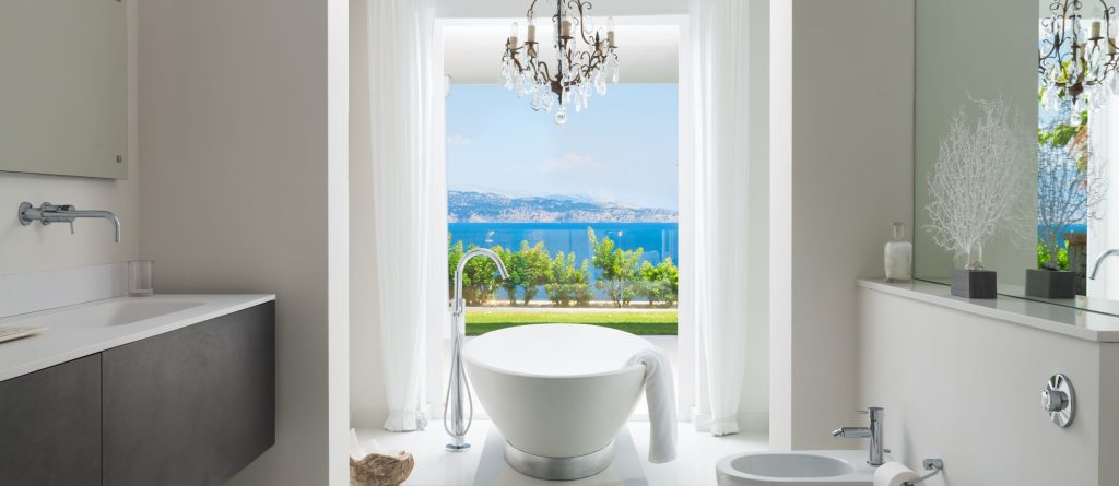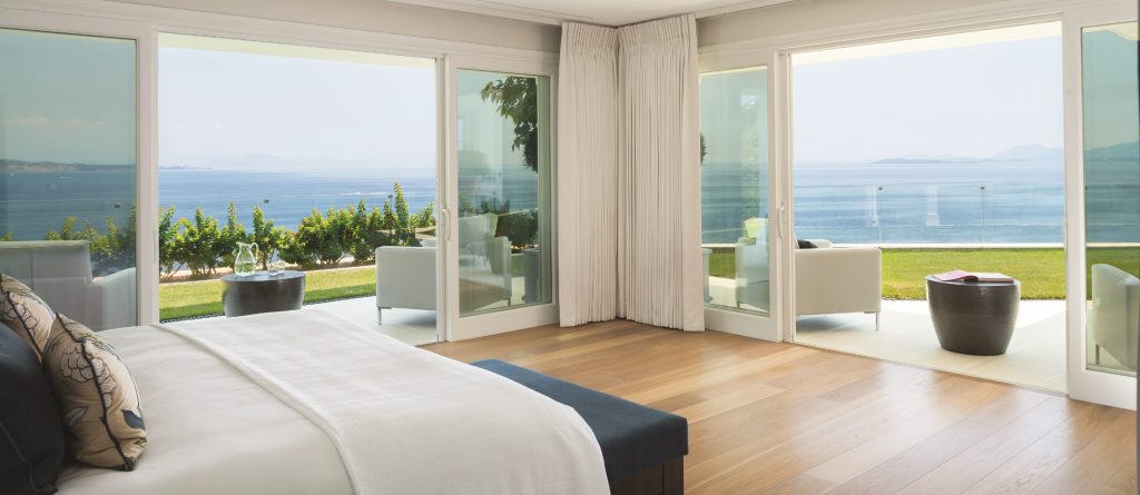 Located on the Greek island of Corfu, this unique villa of 1’000m2 can host up to 12 people across six bedrooms. With its unbelievable view on the ocean, this property is a paradise of tranquillity for its guests. Every suite is therefore composed of its own bedroom with connected dressing room and bathroom.