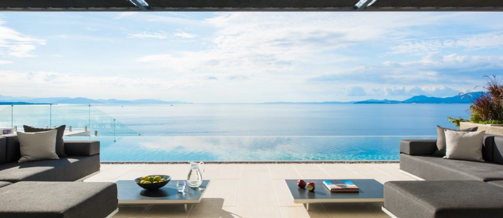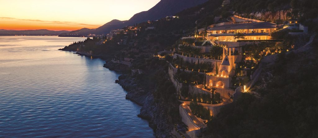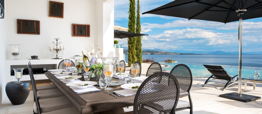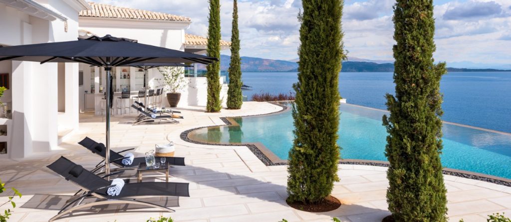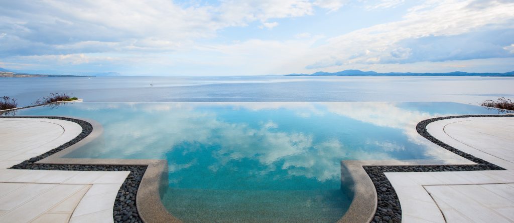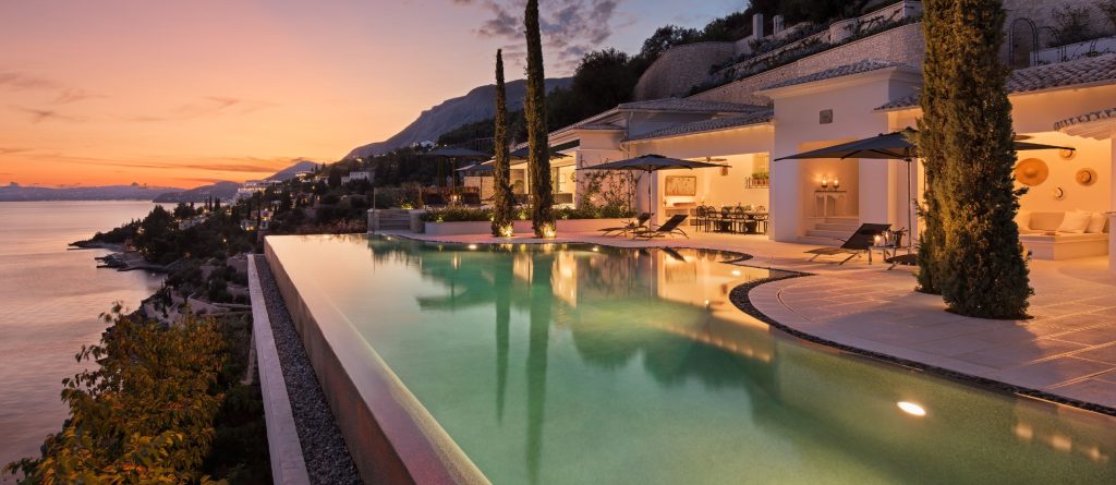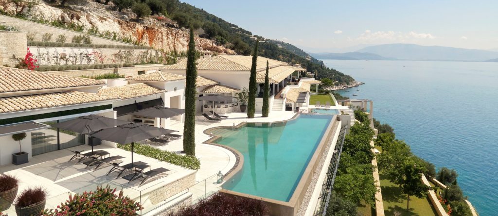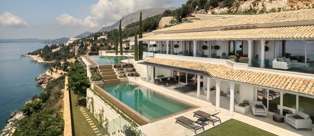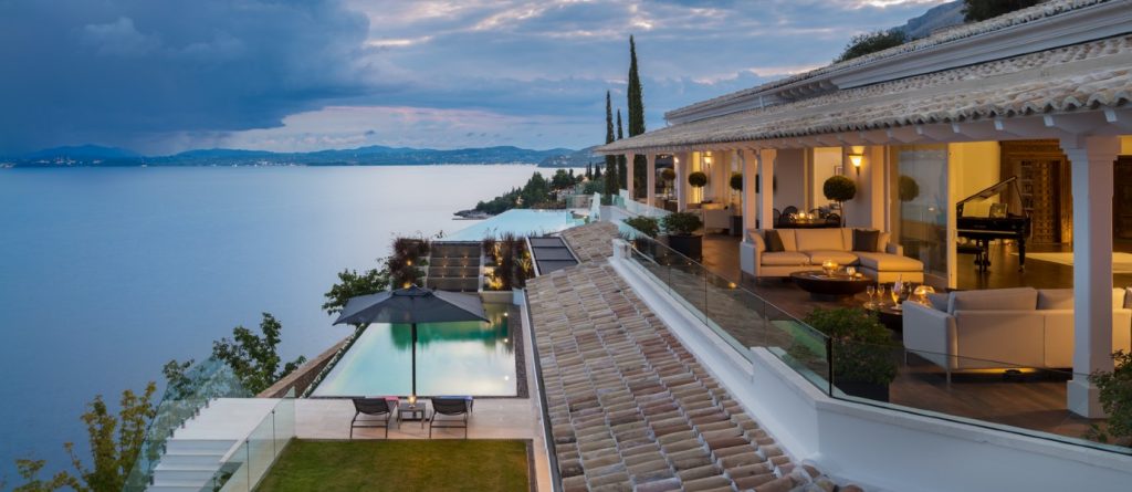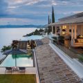 A luxury palace overlooking the Adriatic sea, this stunning villa with 180 degree views on the Greek and Albania coast is the perfect place for a secret luxury retreat with a unique Greek atmosphere. Everything about the house is designed for comfort and space with 2 infinite swimming pools on two levels joined by a waterfall, a spa, a cinema and a private boat located on the private sea platform.