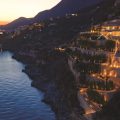 A luxury cliffside palace overlooking the Aegean Sea, with stunning views and a private dock