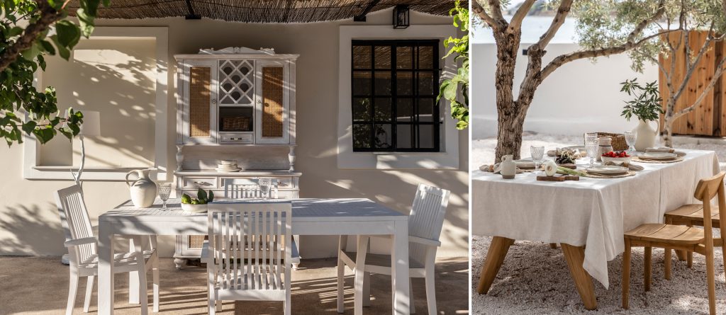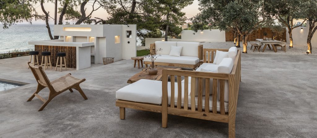The garden has many chill-out areas. Τwo outdoor dining areas, one shady and fresh for your breakfast and the second for your lunch or dinner. The alfresco dining areas are ideal for pleasant moments with family and friends.