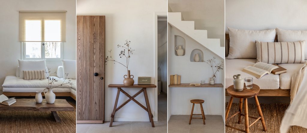 This family-friendly beach house is a true hideaway where every little detail has been carefully designed to create an unparalleled soothing atmosphere. The spacious living spaces, decorated with raw materials in earthy tones and furnished with the finest appointments, contribute to a relaxed vibe that will have you and your loved ones living in the moment as soon as you set foot in the villa.