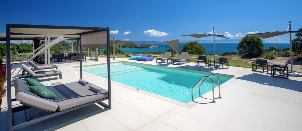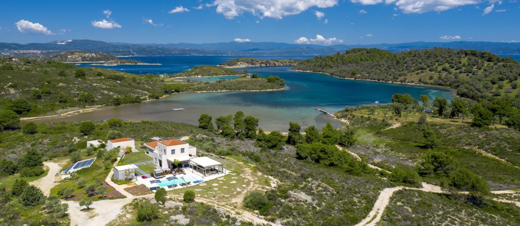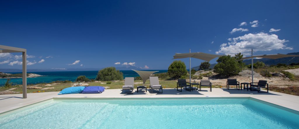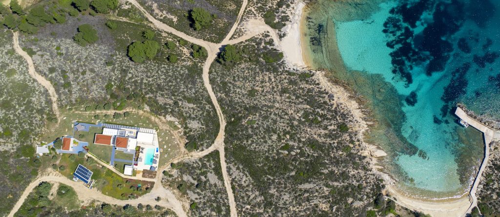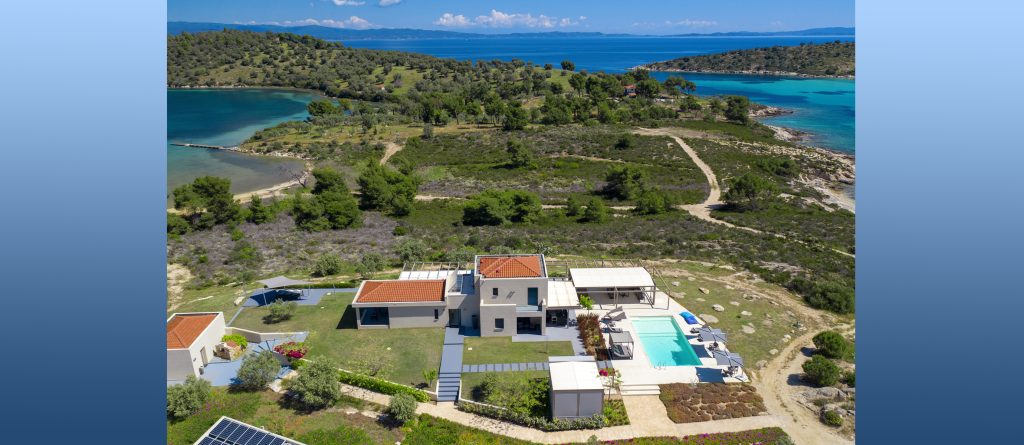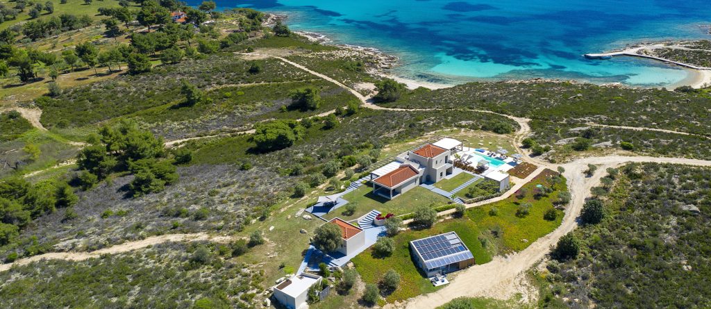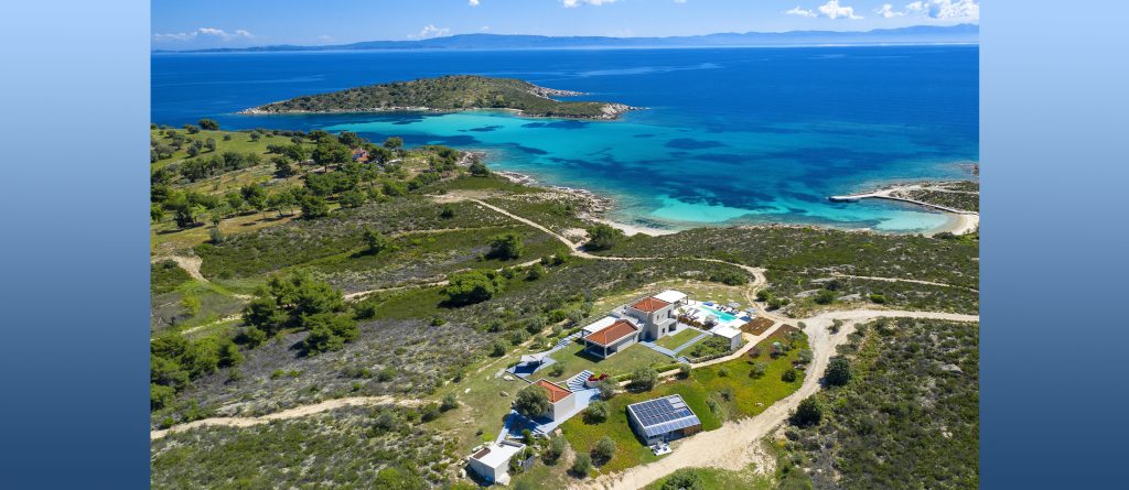 Surrounded by sandy white beaches with calm and warmed turquoise water with direct access to two of them, the private jetty with easy access is perfect to anchor big yachts and sailing boat. This four bedroom bespoke residence, set within a large property of 2.200 sqm, in the northeast side of the island , promises a modern and fully equipped kitchen , two elegant sitting rooms , one looking to the natural gulf of Kryftos and the other one to the mountain of Athos , ample terraces and an inspiring swimming pool.
