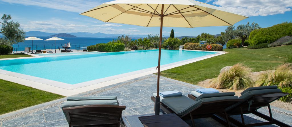 At Lepitsa Beach, 350m from the villa, the small islands and the mountain ranges of the distant Peloponnese roll into the horizon framing a view of breath-taking natural beauty. Walk past 5 small coves on the way to Lepitsa Beach.. The first is a 150m walk – it is a bit of a scramble to reach the sea, but it feels like a secret place to those who venture there. The water is divine, clear azure blue and sparkling. There are four more tiny natural coves, one with ladder access into deep water the others a mix of sand and stone.