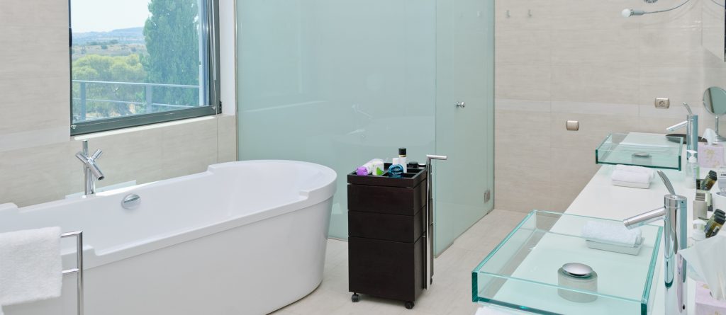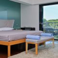 Two master suites. The suite at the top with 42 sqm of calm privacy. Spectacular views with north south windows overlooking sea, valley, forest & mountains. Bathroom with large shower and full sized bath, dressing area leading on to large private balcony. At pool level the suite operates as a grand master suit for two or for a family room for six. Small salon with concealed, pull down double bed and seating. Large bedroom separated by sliding doors. TV and steam fire place. Large bathroom, walk in dressing room with extensive wardrobes and sofa bed.