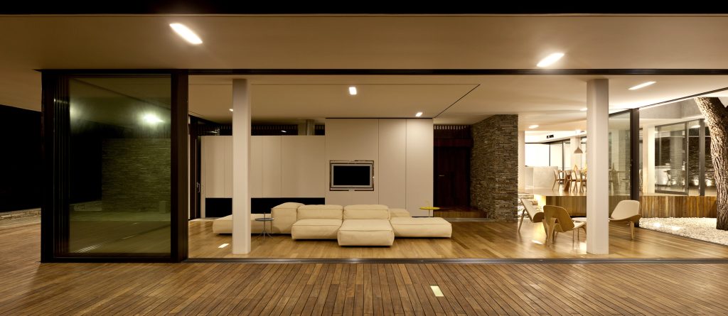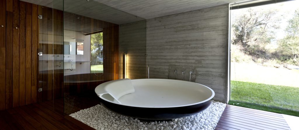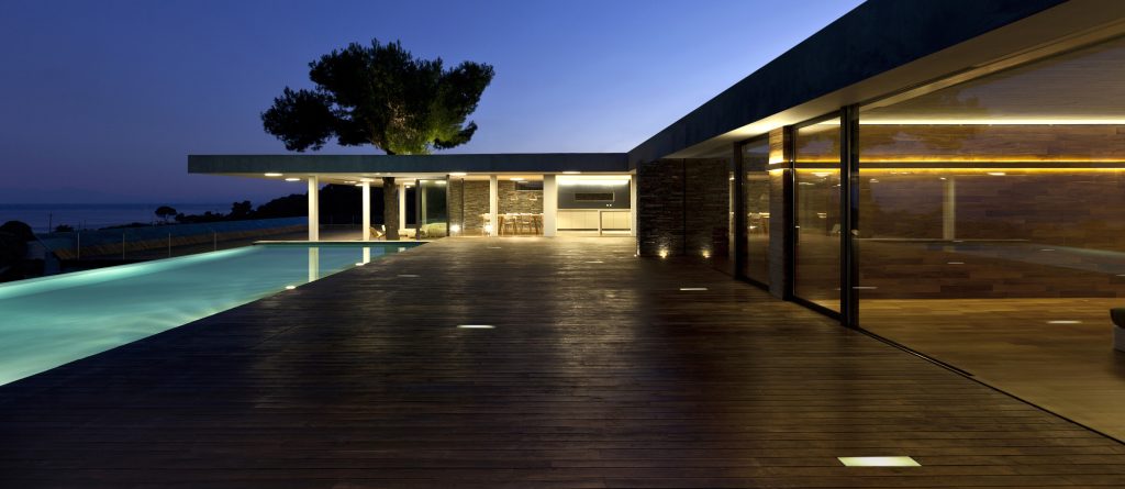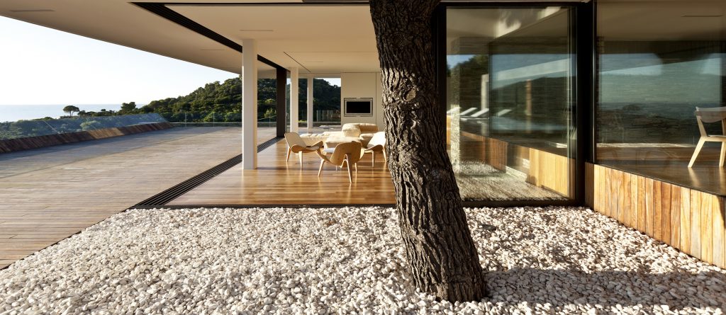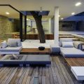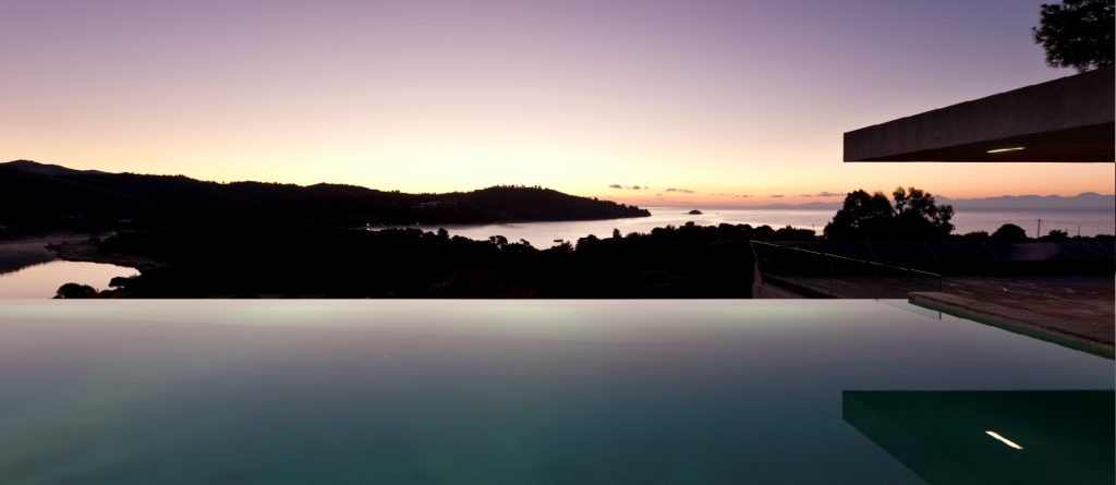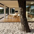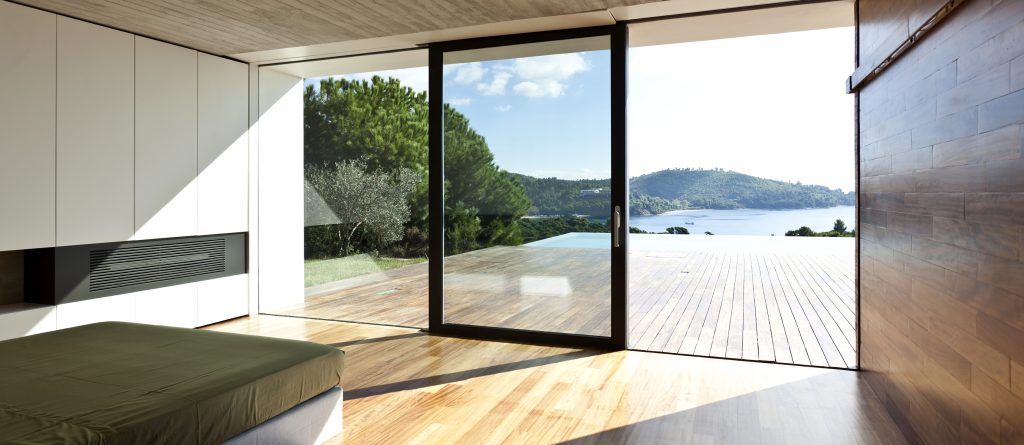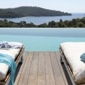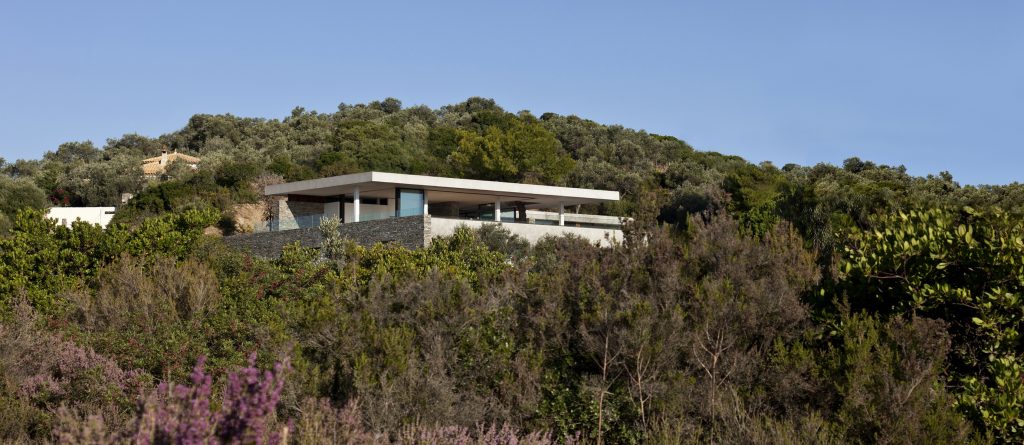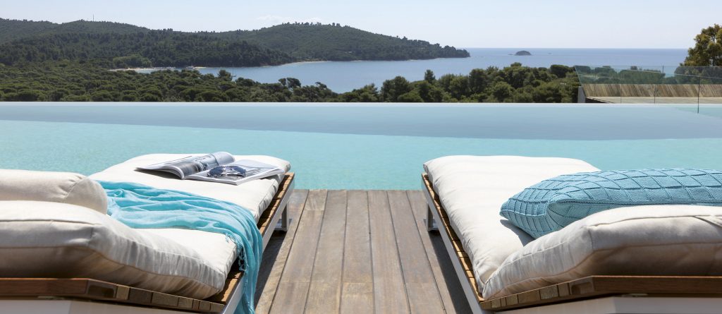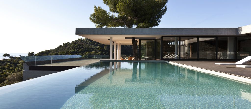 The interior of the villa, which is divided into two levels and has a total of six bedrooms, is the definition of classic modern and minimalistic. The glass windows offer panoramic views from every single room in the villa. These windows, slide opened, creating the unique sensation of being outside even when you’re protected under the cool shade of the villa. Also, the interior of this totally “green” villa is made of natural materials such as stone, wood and glass, creating a cozy atmosphere you will forever want to escape in. From there you can always indulge in unobstructed views of the sea as it continues from the edge of the pool.