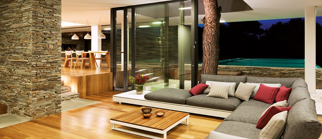 The refreshing green of the forest and the wonderful blue of the sky. Inside outside living…a minimalist villa, embraced by nature