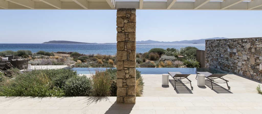 Created by award winning architects and featured in countless design magazines around the world, this is a luxury four bedroom seafront villa on the Greek island of Paros, complete with friendly housekeeping staff. Cutting edge ecological construction blends organically with chic and welcoming interiors, framed beautifully by the jewelled hues of the Aegean seascape.