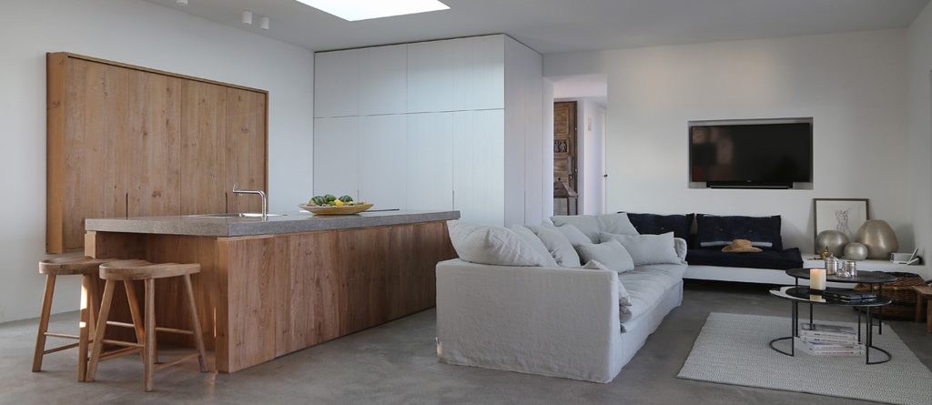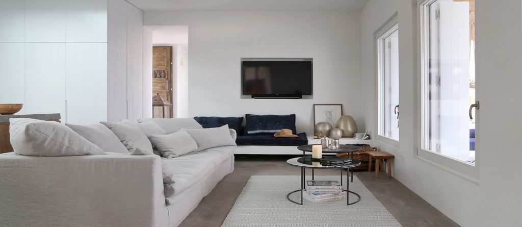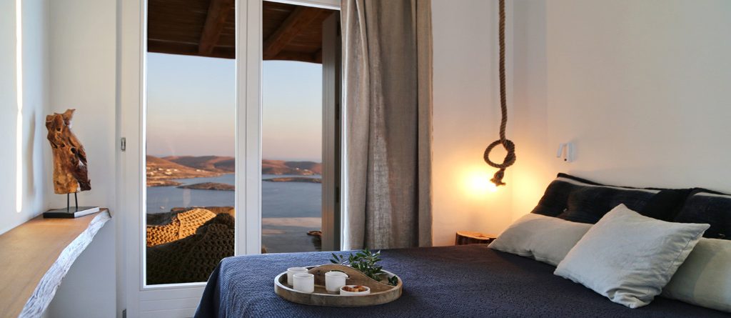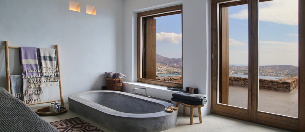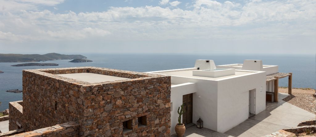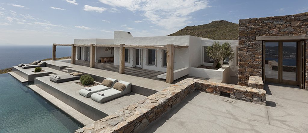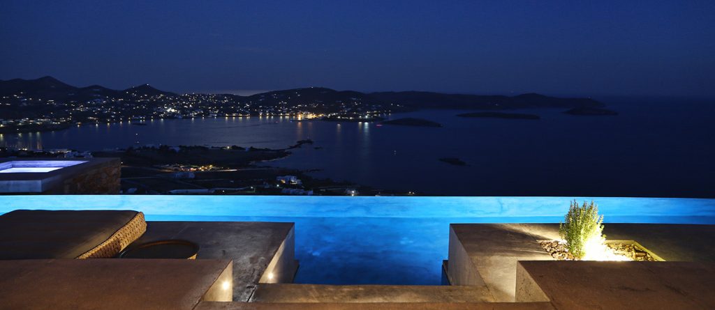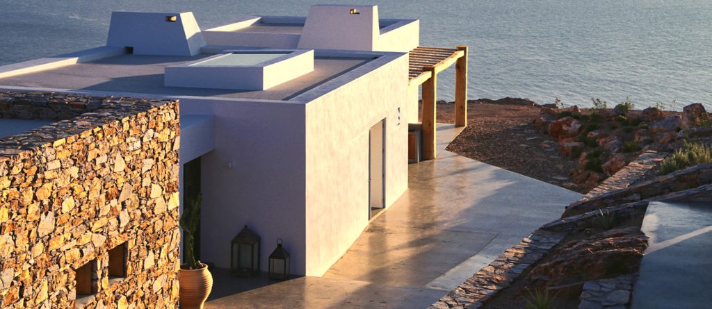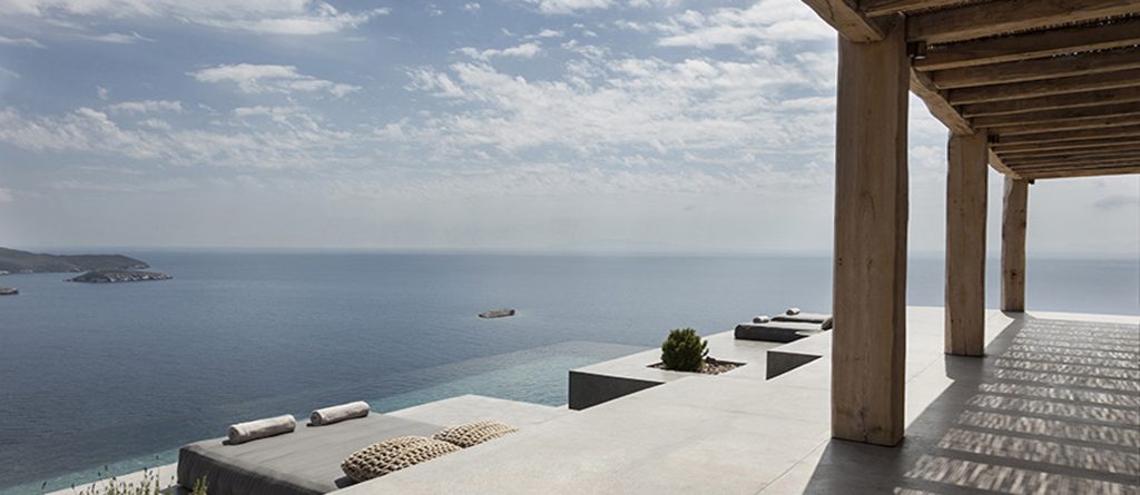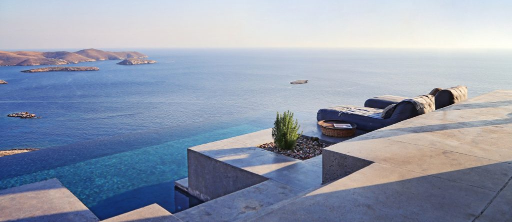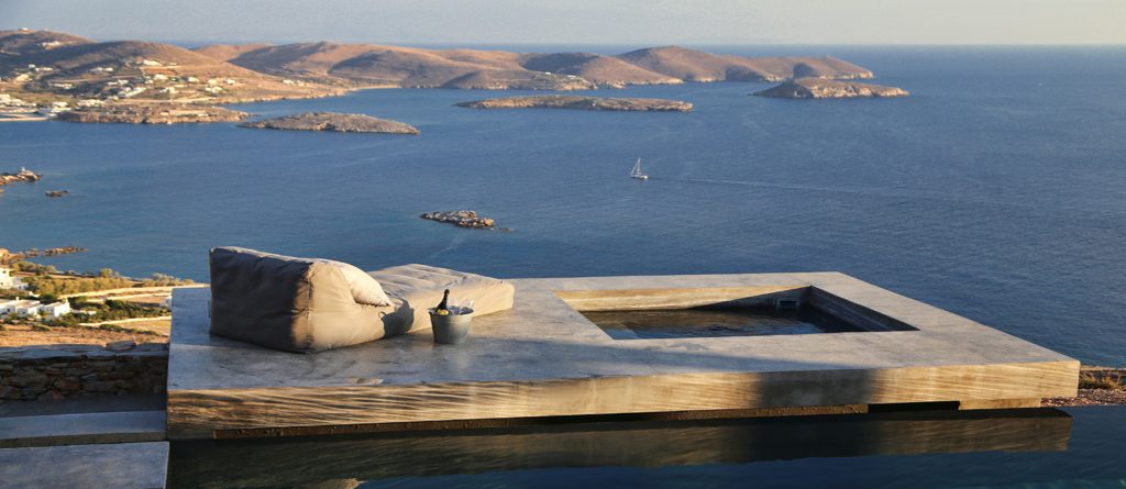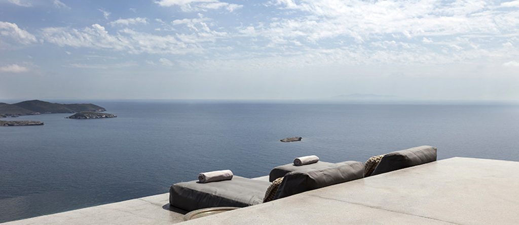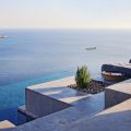 This design conscious villa offers a fascinating view of the sea and offers a refined interpretation of the Cycladic architecture. On the sun terrace with infinity pool, whirlpool and divine olive trees you will find the ultimate living pleasure with first-class living areas with meticulous design, including handcrafted decor, first-class materials and the latest technology.