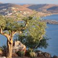 Many traditional recipes stand out in the island’s gastronomy such as Aetopita (a pie made with fish and vegetables), karabola (saucy snails with Sage), lachanodolma (cabbage leaves stuffed with rice) with raisins and other specialities including the meletinia cheese pies, marathopita (fennel pie), louiza (verbena) , grilled pancetta, sisyra (pork), braised fligkouni (entrails) and local Psaraki (tenderloin). Yet the journey of tastes and flavours doesn’t stop there. It goes on with delectable desserts such as pastelaries (salted figs), traditional Turkish delights and delicious nougat-pies (chalvadopites).