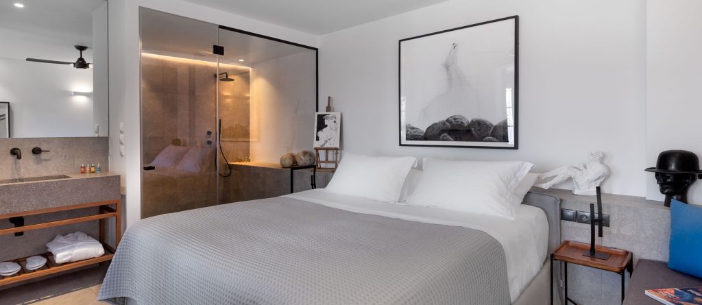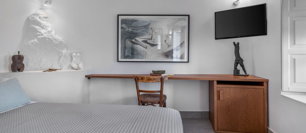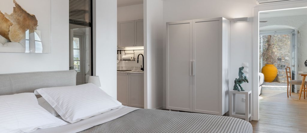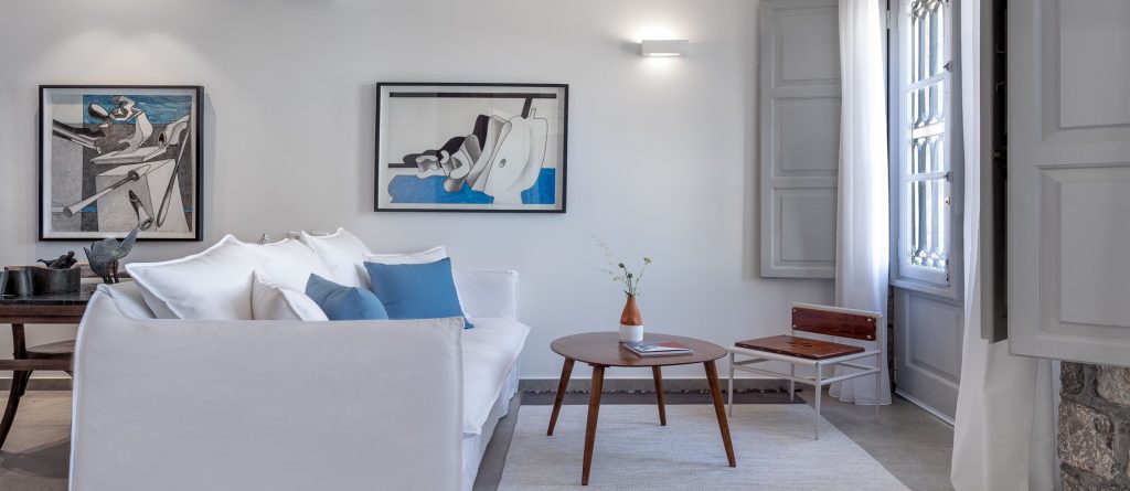 The unique layout offers several spots within the residence to isolate while reading a book under a lemon tree but also to enjoy a get-together summer vacation. The original artworks in the bedrooms and impressive sculptures at the terraces inspire a genuine connection with the roots of the residence while the contemporary design, delicate colours and eclectic furniture create a modern retreat for relaxation.