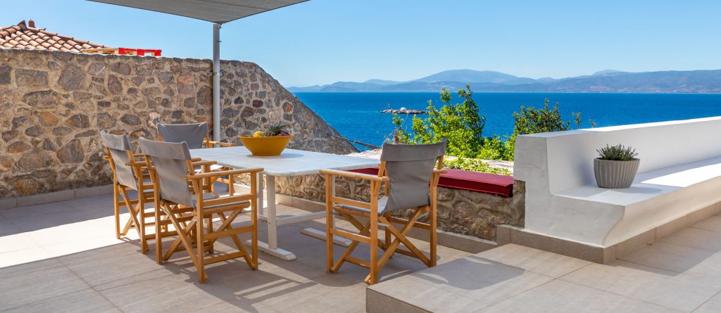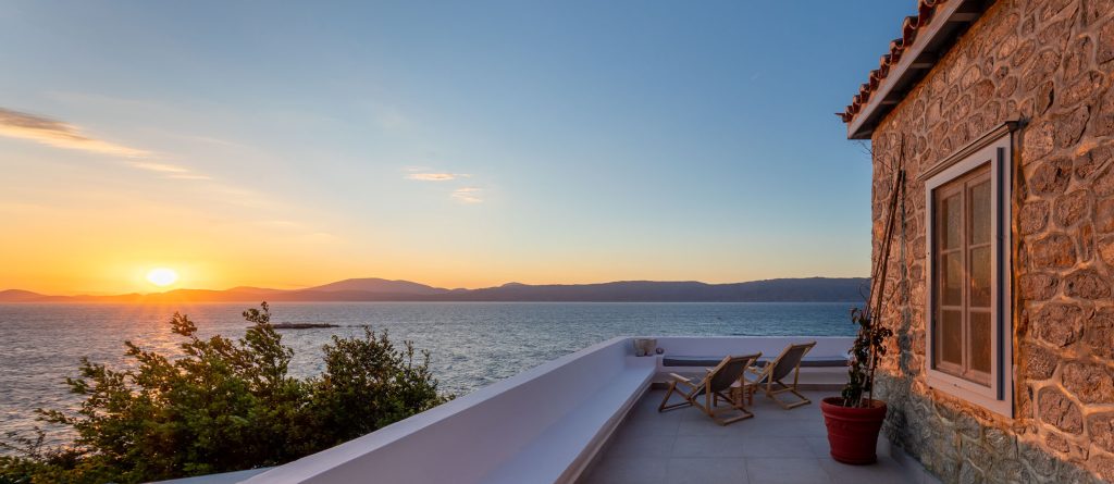 Drive to Metochi, then Ferry or Sea-taxi | Duration: 3 hrs drive from Athens International airport & 20 mins sea taxi ride.