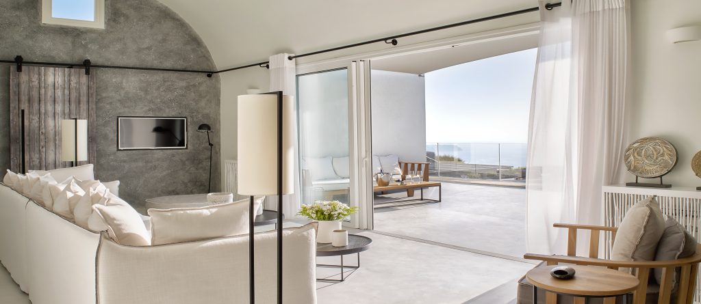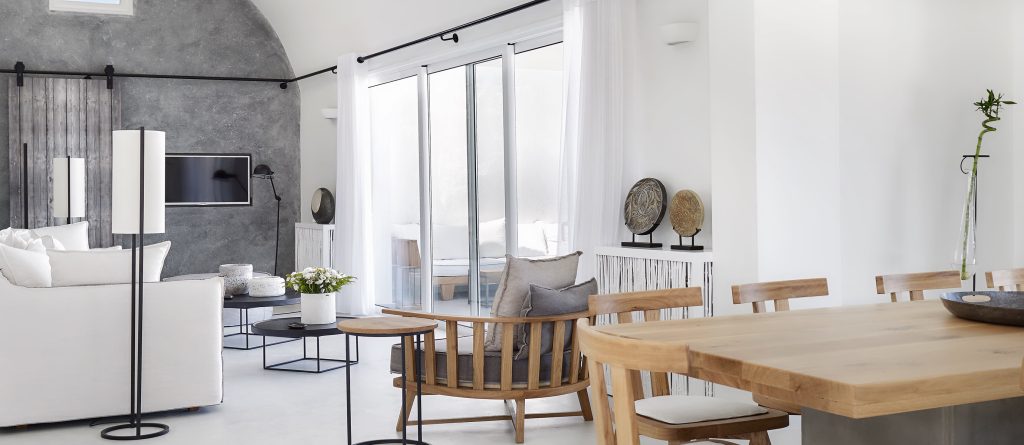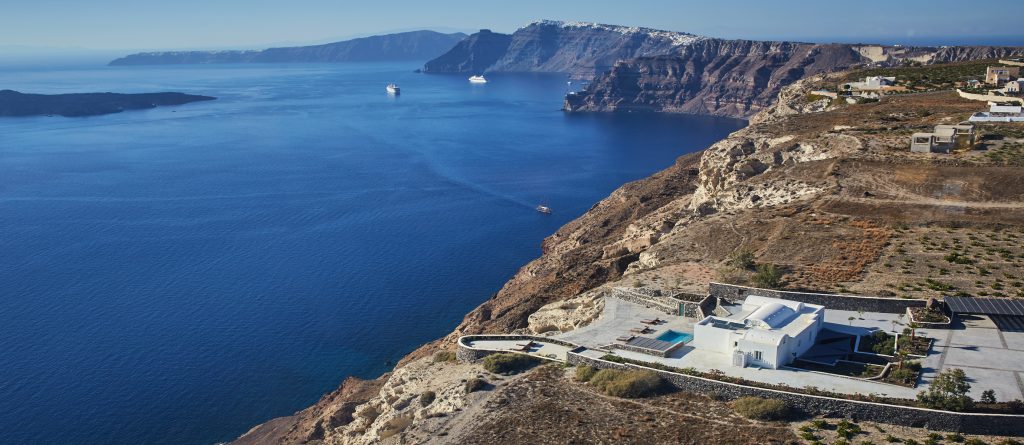Hidden away in the megalohori caldera, the estate combines absolute privacy, spectacular views and enchanting ambiance to become the most luxurious and relaxing retreat of Santorini. Combining Cycladic architecture with modern design, this is a wonderful architectural gem of minimal style in a quiet area of Santorini’s Caldera, surrounded by nothing but the wild beauty of the island’s nature.