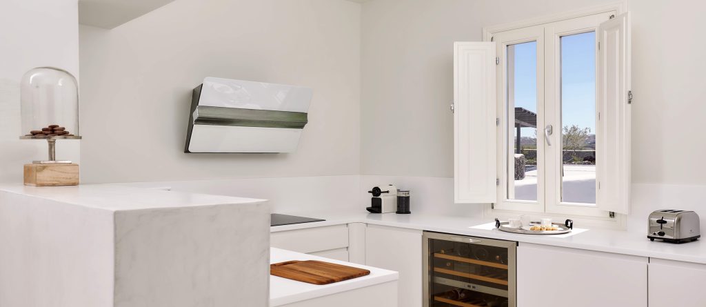 Depending on the occasion and the guests’ desires, the outdoor space can be used for romantic dinners, family gatherings, parties with friends or even wedding ceremonies and receptions, overlooking the Aegean sea.