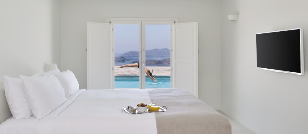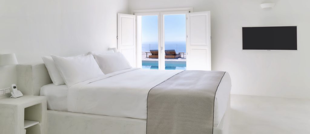 - Complimentary transfers to/ from the airport/port and to/from the black sand private beach in Perivolos