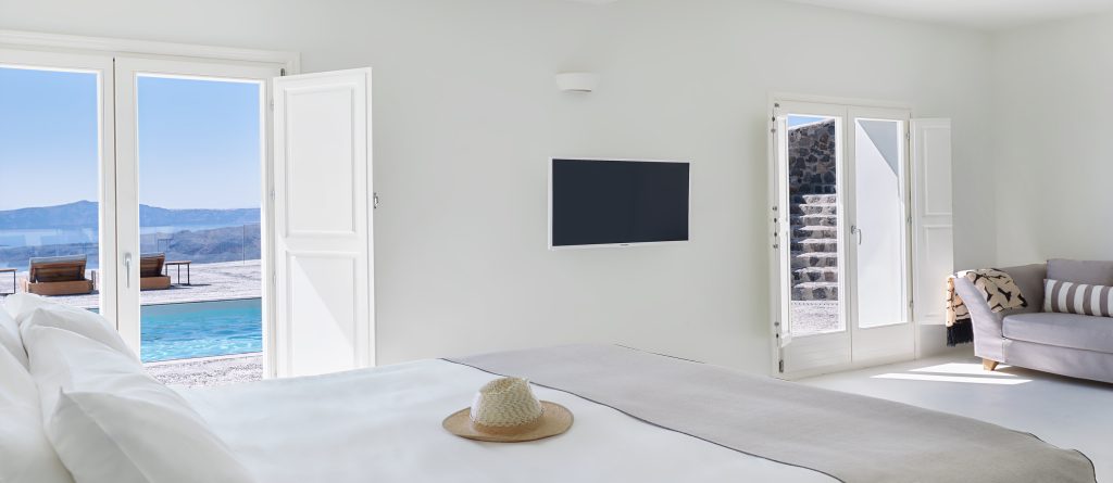 The estate’s minimal design, the privacy and calmness of this secluded area, the sea’s peaceful sounds and the mesmerizing volcano views complete the it’s tranquil ambiance and character.