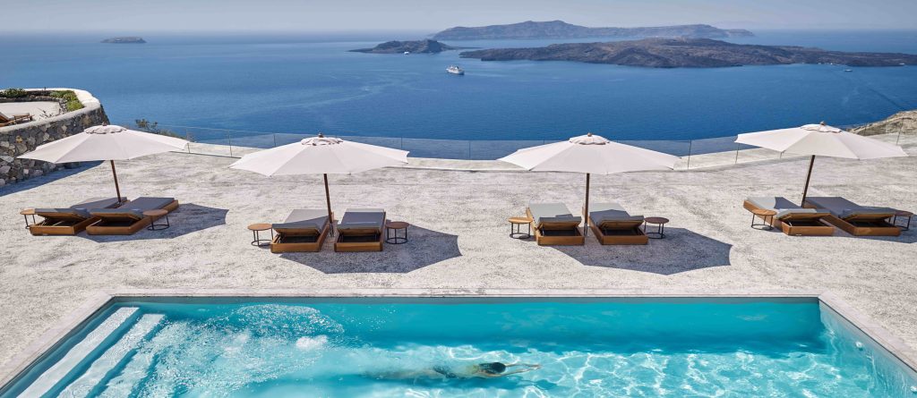 Hidden away in the megalohori caldera, the estate combines absolute privacy, spectacular views and enchanting ambiance. Fully staffed