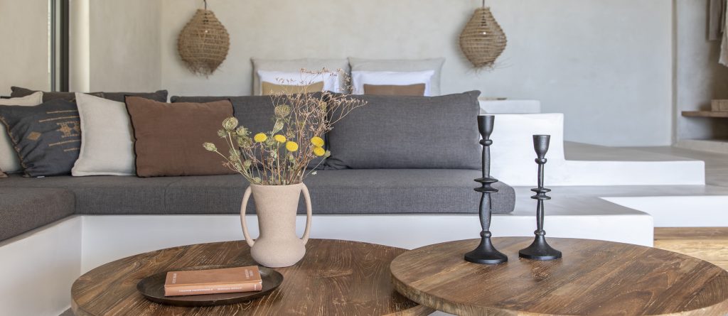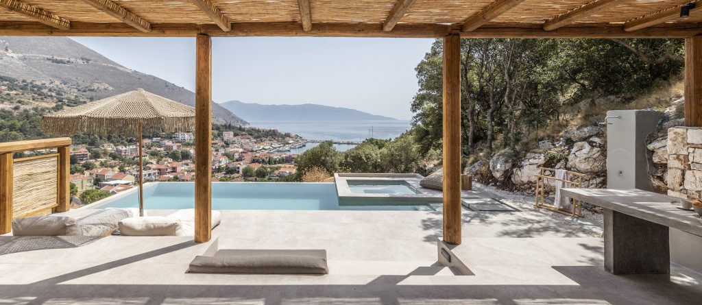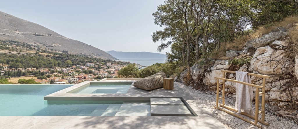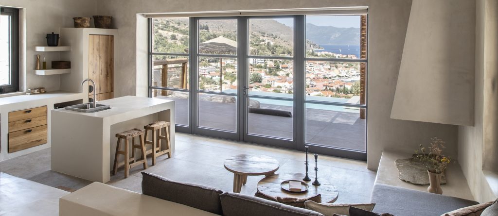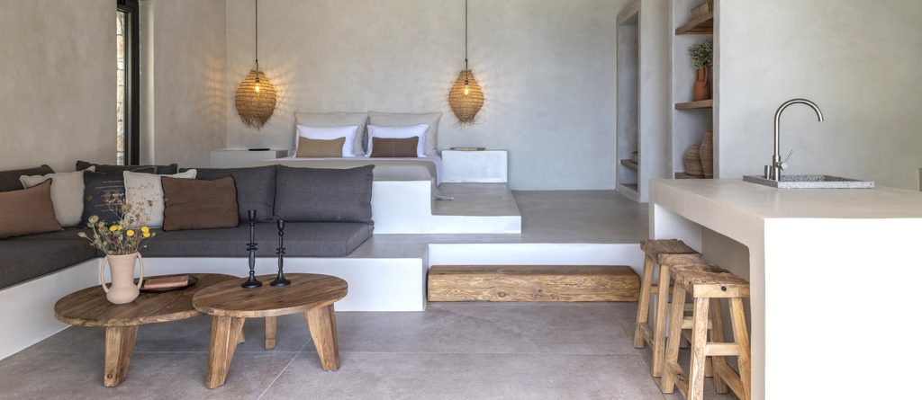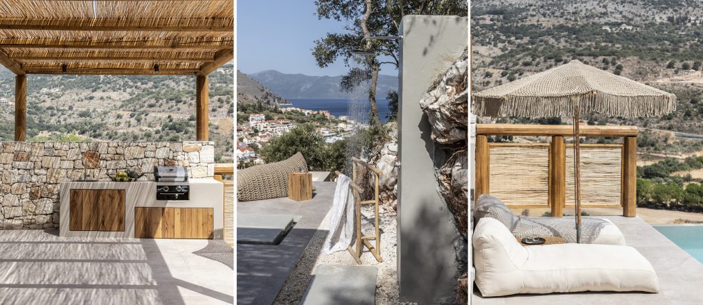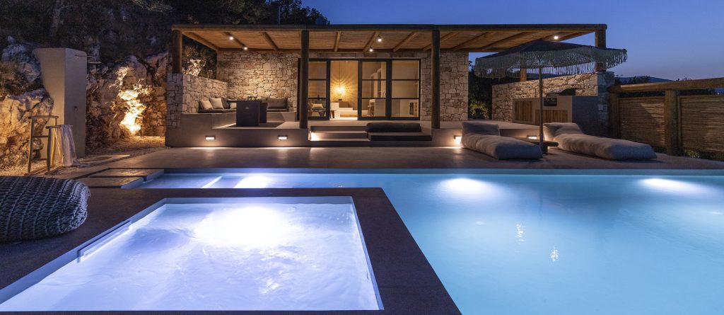 Designed with a modern and minimalist aesthetic, the big open spaces frame the island views from every room, while earthy brushstrokes complement the understated elegance of this luxurious stone villa.