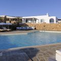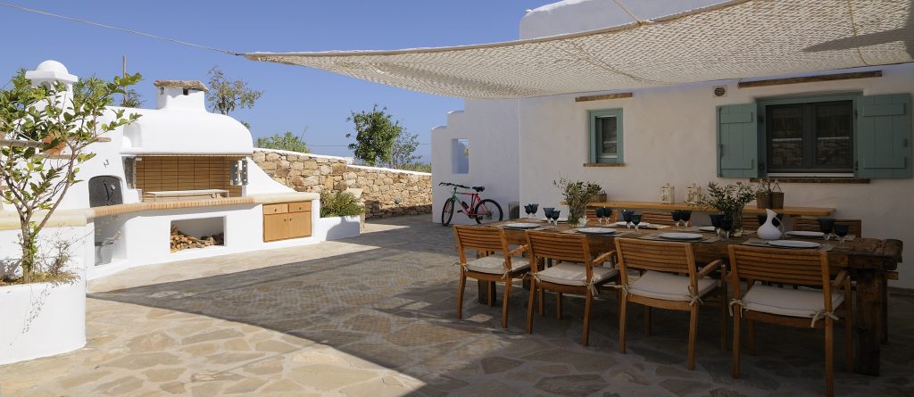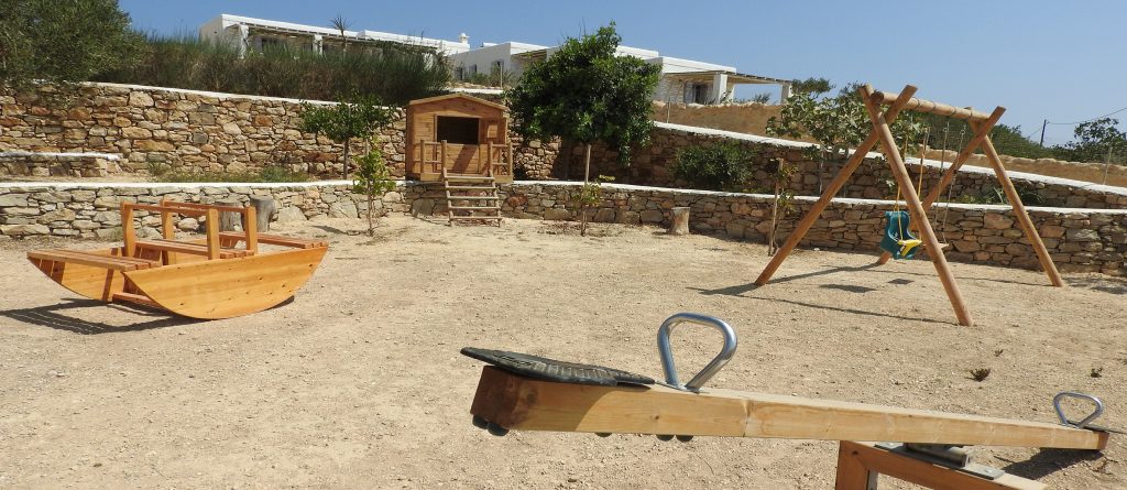 Villa Keros is surrounded by a garden of 5000 m2 fully integrated in the Cycladic landscape and natural terrain of the island. A small melon field and herb patch guarantees few fresh biological vegetables for the visitors. The garden also offers many spots for relaxation and enjoyment. In the garden there is a small terrain for mini soccer, volleyball, a place for yoga/pilates and a playground for small children.
