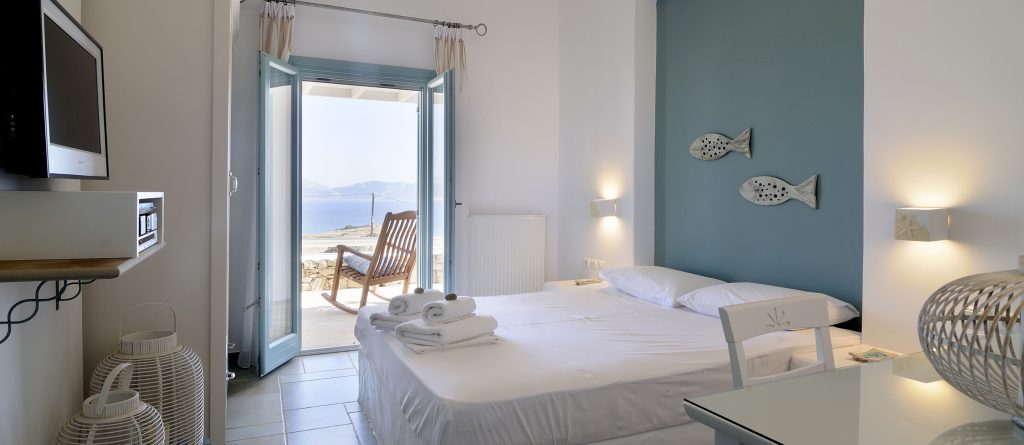 Few cars! Thanks to the small distances, most of the visitors prefer to stroll or use a bike in order to discover the island’s unique natural beauties and the scenic alleys of Cycladic architecture. A real jewel at the center of the Aegean!