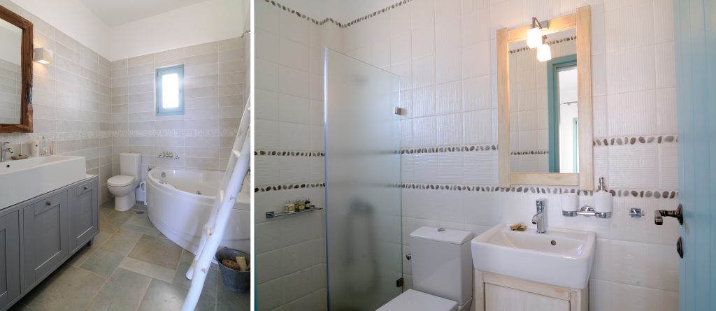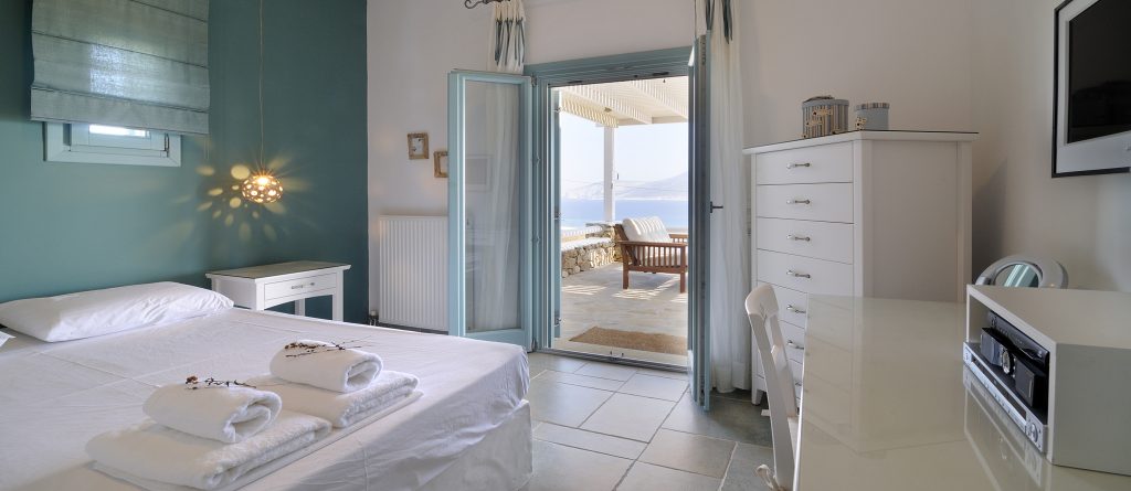 • 2 double bedrooms en-suite; 1 bedroom with two single beds en suite. Sleep   6 people. All bedrooms have sea view, air condition, a French door with a screen sieve, bedside tables, desk/dressing table, wardrobe, drawers, sat TV, DVD player, safe box, telephone, Internet.