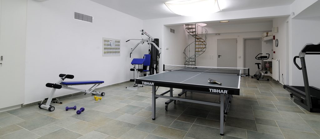 • Gym area (electric gym runner, magnetic bicycle, multi-use equipment for 30 types of exercises using weights, abdominal bench, gym mat, Pilates ball, step and ping pong (table with racquets).