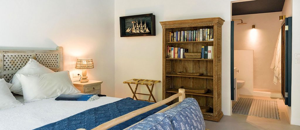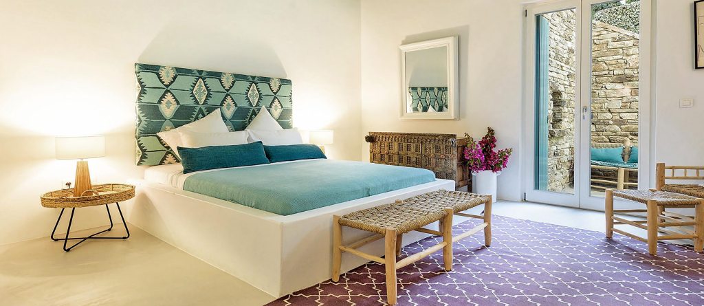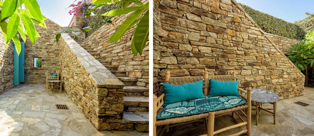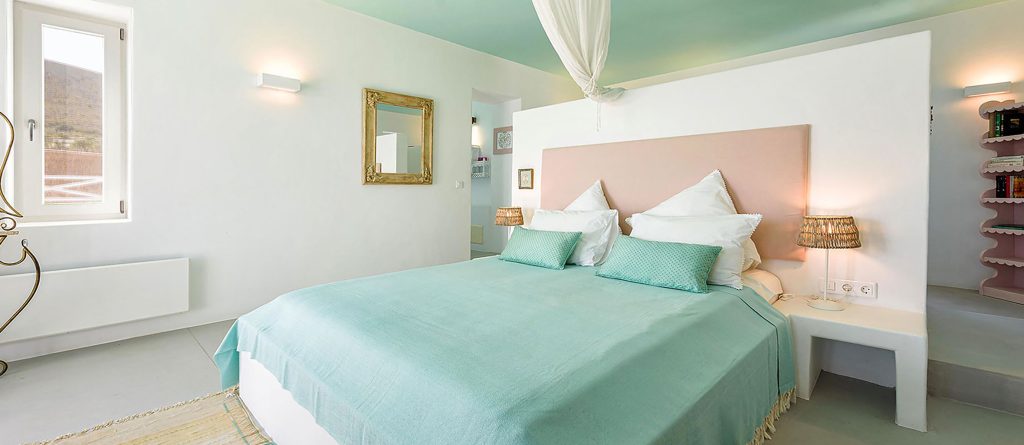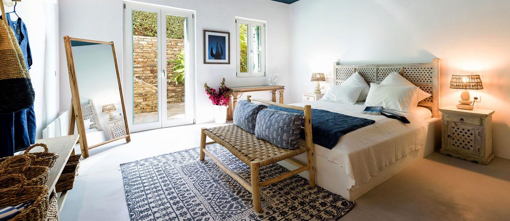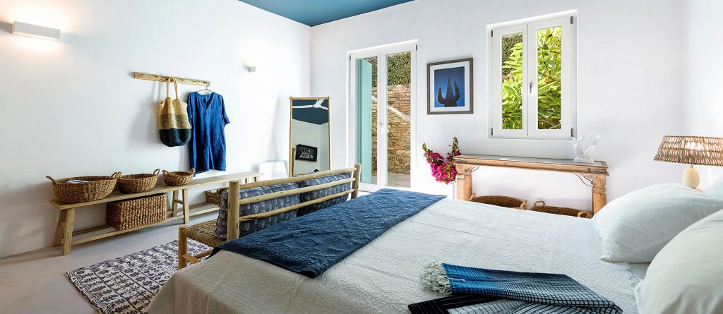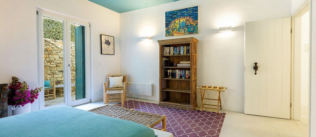 On the top floor of the villa, there is a delightful airy suite with a walk-in dressing area and a stunning roof terrace offering guests panoramic views of the surrounding hillside, sea and the numerous surrounding islands.