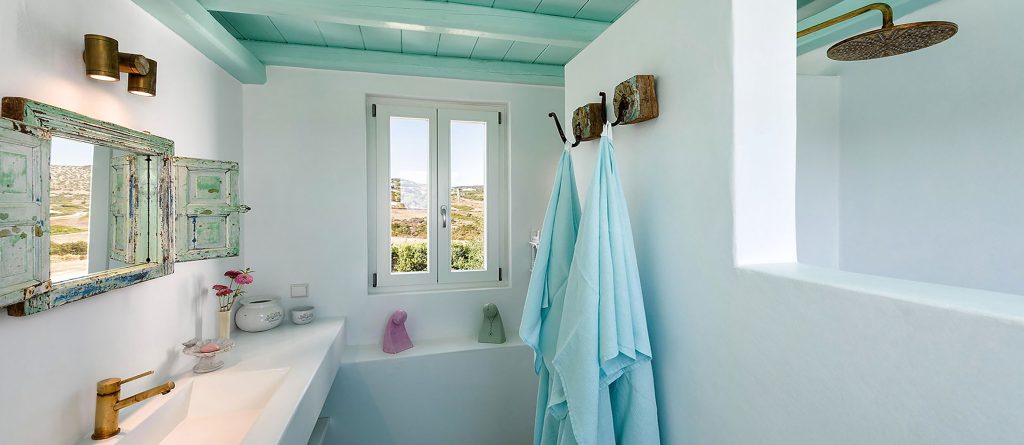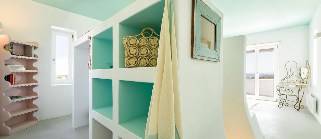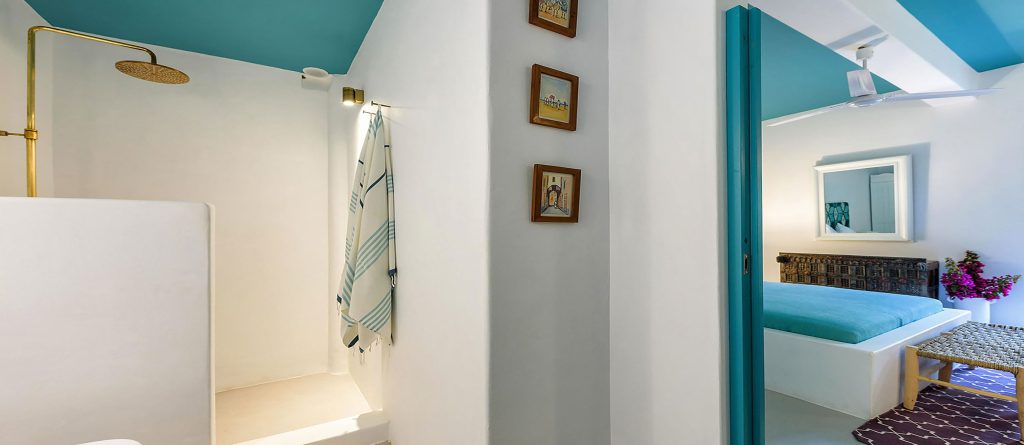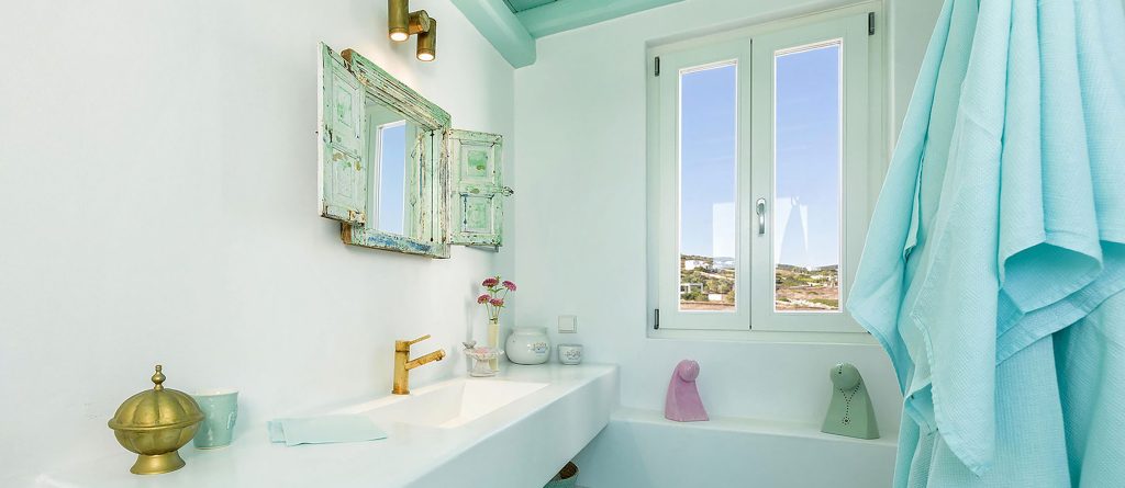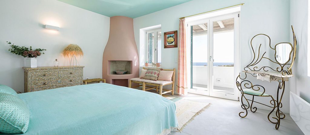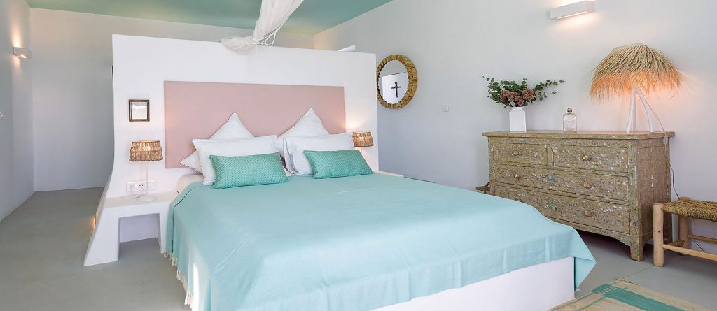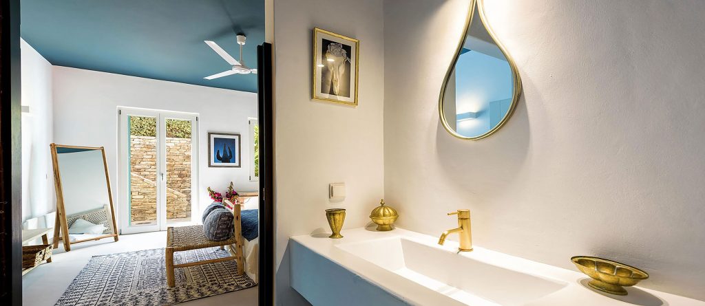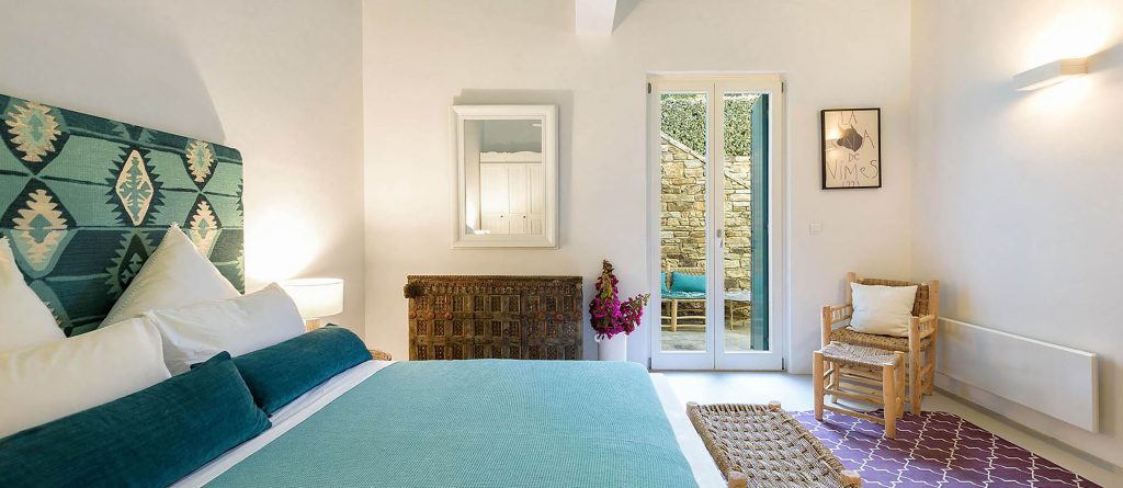 On the top floor of the villa, there is a delightful airy suite with a walk-in dressing area and a stunning roof terrace offering guests panoramic views of the surrounding hillside, sea and the numerous surrounding islands.
