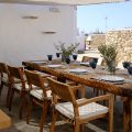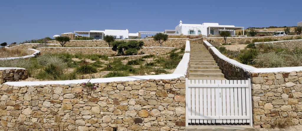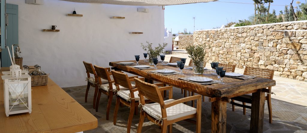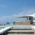 Villa Pira is surrounded by a garden of 5000 m2 fully integrated in the Cycladic landscape and natural terrain of the island. A small melon field and herb patch guarantees few fresh biological vegetables for the visitors. The garden also offers many spots for relaxation and enjoyment. In the garden there is a small terrain for mini soccer, volleyball, a place for yoga/pilates and a playground for small children.