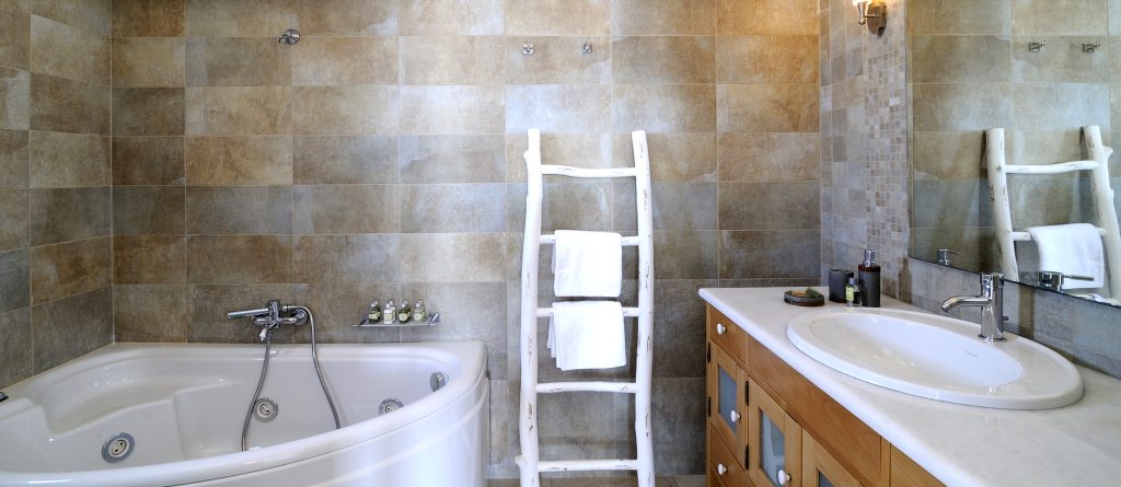 Children also enjoy the ping pong and the basketball in the pool. A small water cascade separates the children’s pool of 20 m2 from the big one which has a hydro massage. Around the pool, there are two built sitting areas with tables, comfortable sun beds and umbrellas. The small pool bar is equipped with a fridge & music system. You can always connect your smart phone and play your favourite music even with air play IOS or Android.