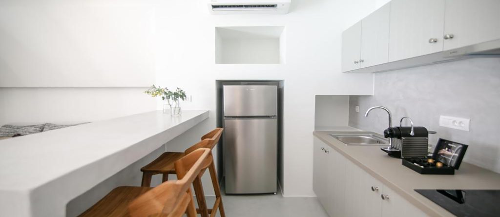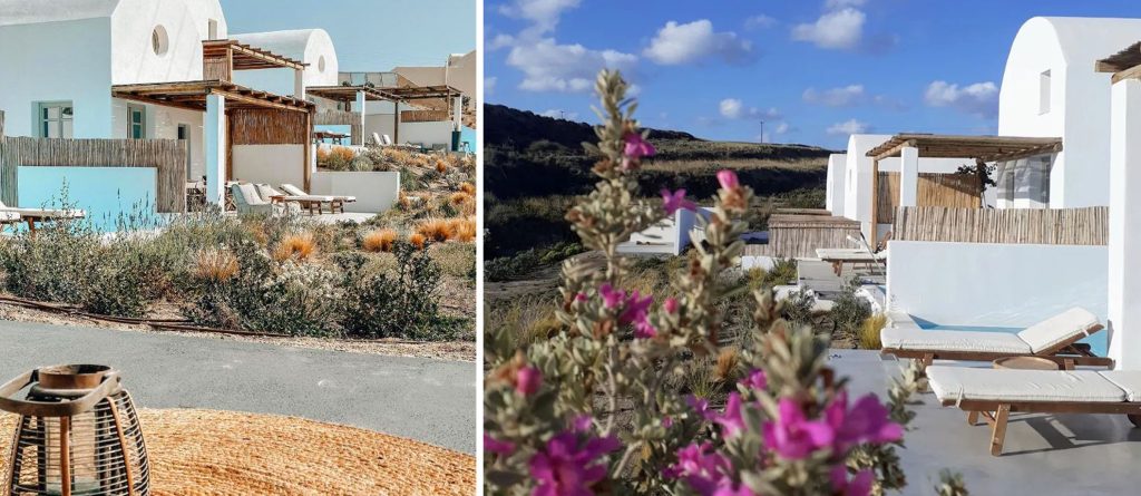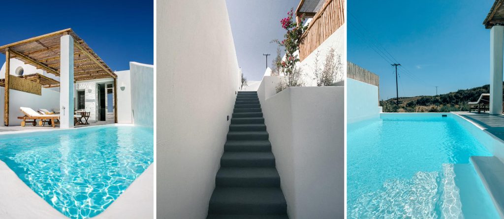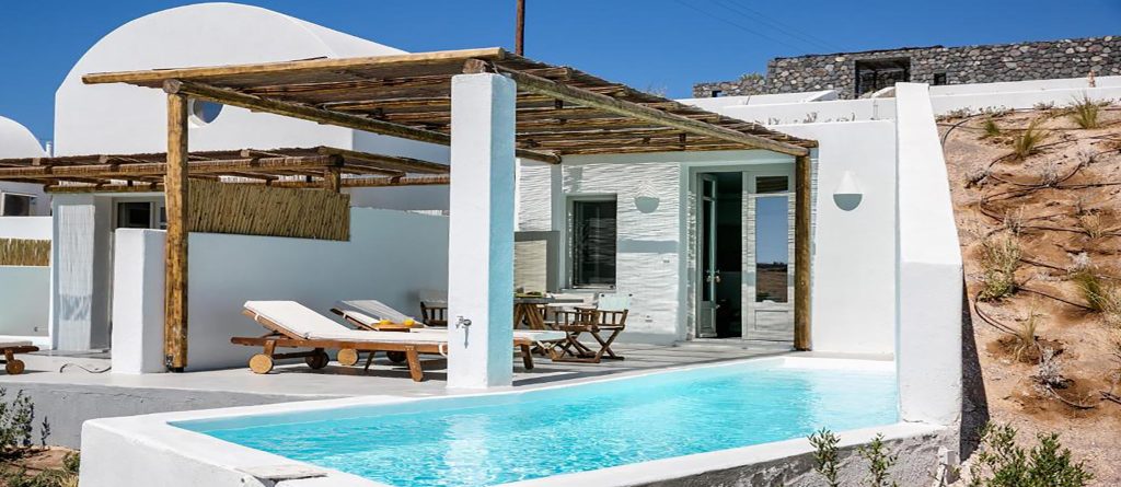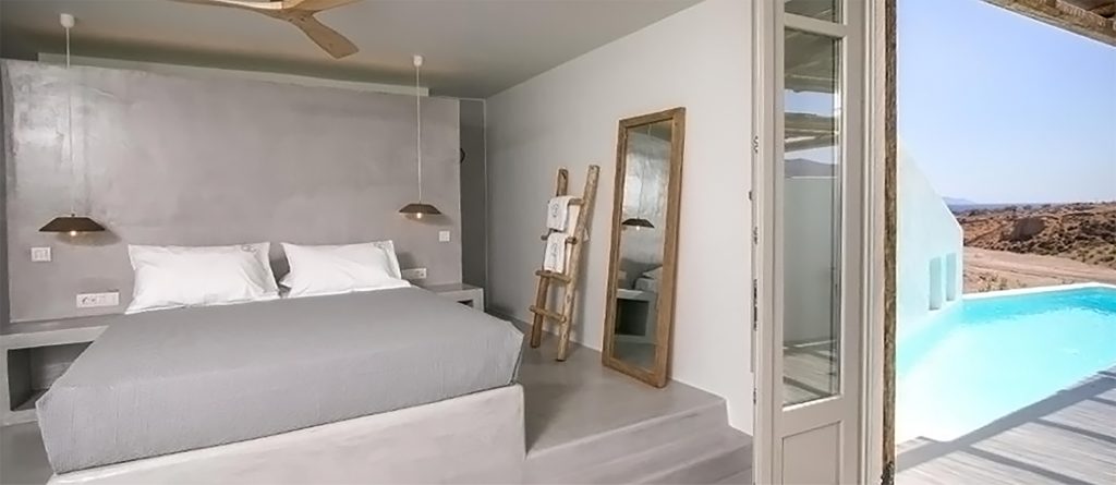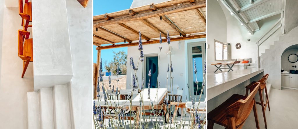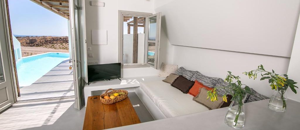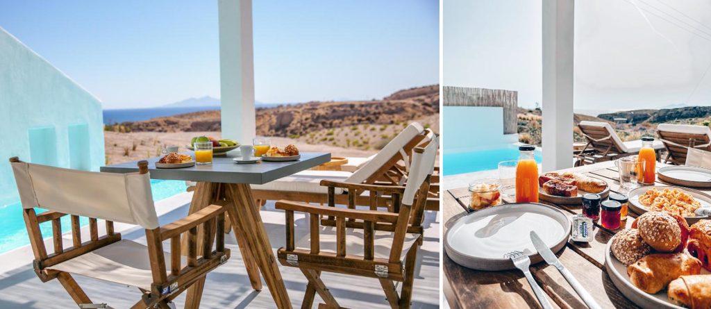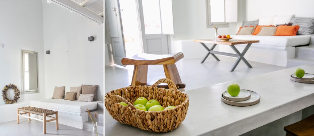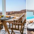 Opt for one of the 4 villas or the suite and you’ll be greeted with a stylish cave residence (yposkafo) enveloped by white-washed walls and minimal design with attention to detail. Roll out of bed and head straight into the calming waters of your own pool or take the time to lounge on your comfortable sunbeds watching the sun rise. Thera Villas provide the perfect solution for large groups traveling together since if booked in total, it can accommodate from 18 to 23 people.