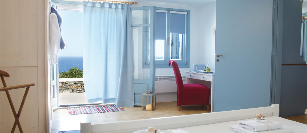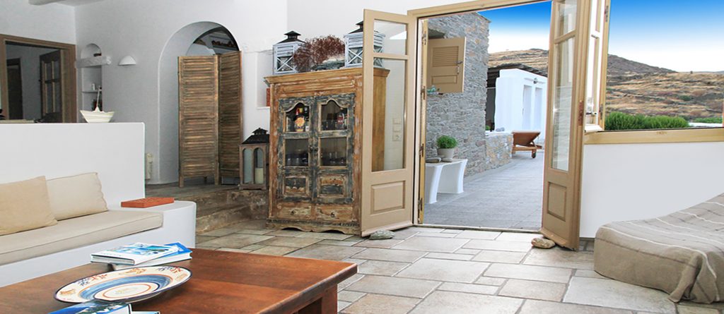 The property is built on 2 acres of land and faces east-northeast, towards Syros and Serifos islands. It is placed at the end of a private, country road, at a secluded and tranquil location. It is an ideal holiday destination for those who seek a simpler, more relaxed and carefree vacation. Guests can experience friendly and outstanding hospitality combined with a variety of luxury amenities. The property welcomes you to a world of unique style, offering high-quality and personalized accommodation services with an emphasis on wellness, gastronomy and entertainment.