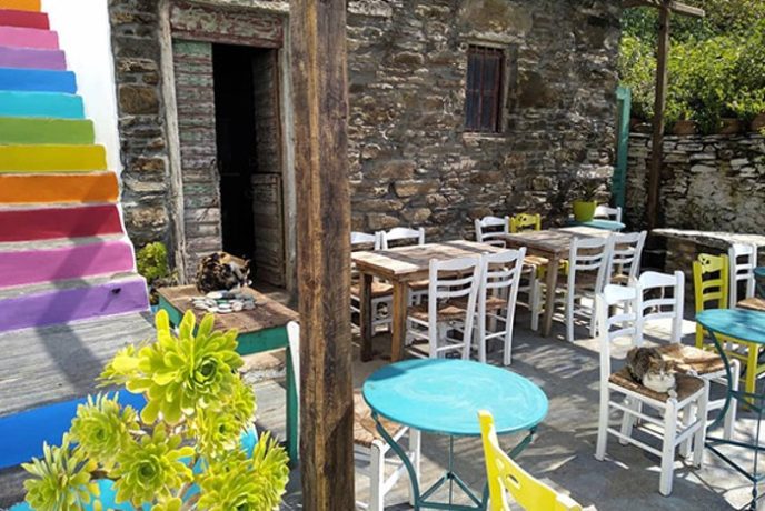 Triantaraki is a traditional Greek kafenio, with a modern decoration that makes it stand out. It is spotted in a beautiful alley of Triantaros village, on a high spot that commands spectacular views over the surrounding area. What is worth mentioning about Triantaraki, is the wide range of options in its menu. It offers coffee, breakfast, desserts, local drinks, mezedes and other delicious, Greek assortments. Triantaraki is also known for its variety of Greek craft beers and Greek wine labels.