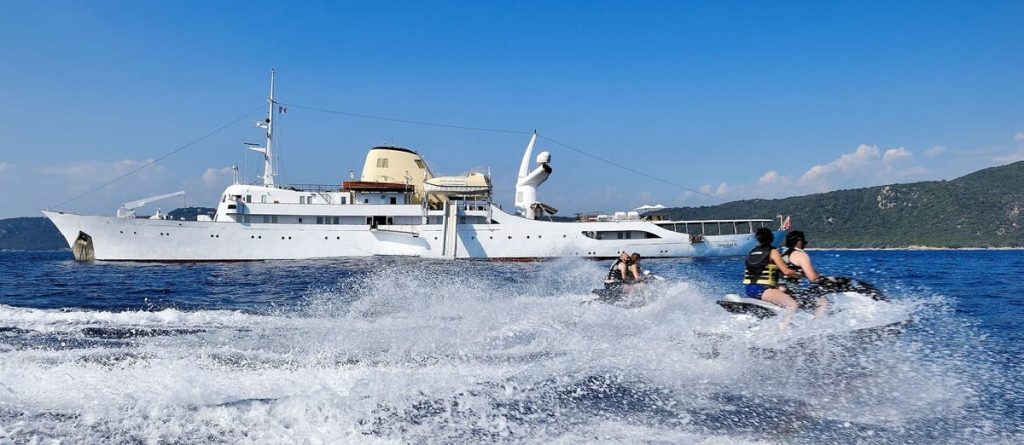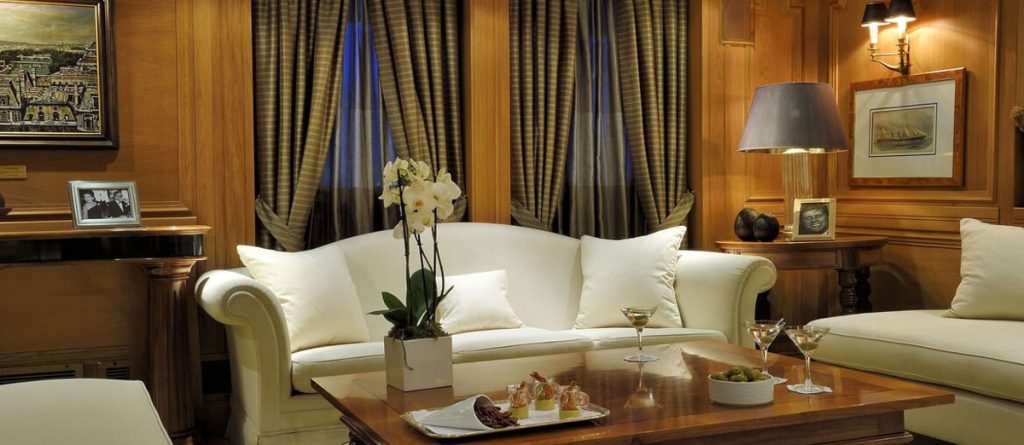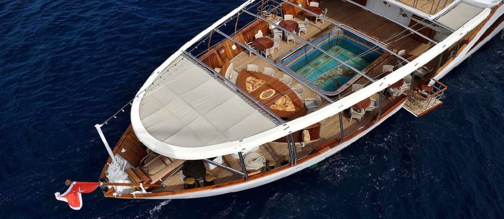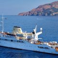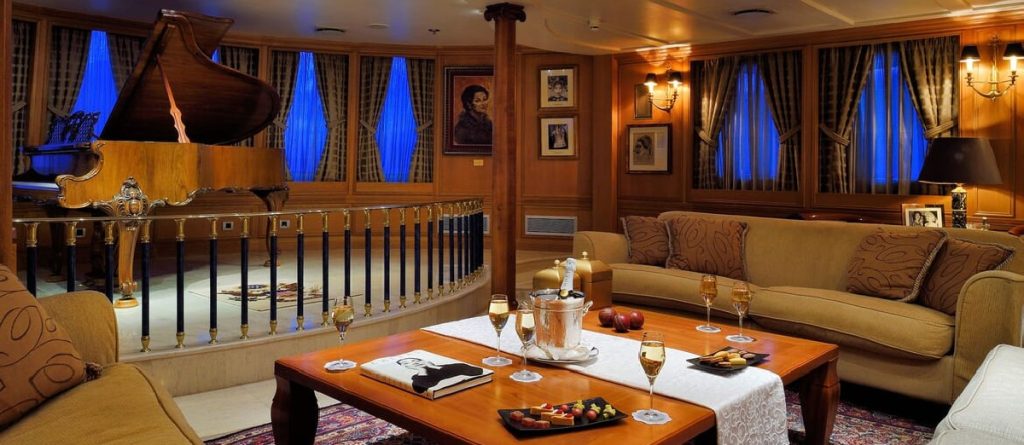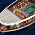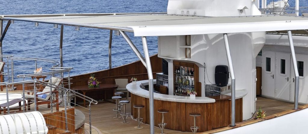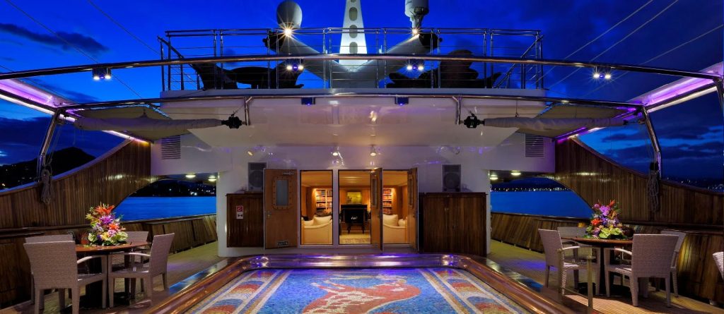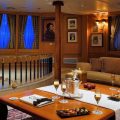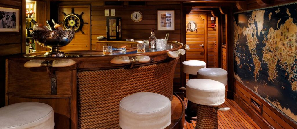 The 99.13 metre Christina was named after his first-born child, who inherited her father’s yacht at his death in 1975. However, with the memories of those carefree days perhaps too poignant, Christina donated her namesake to the Greek government in 1978, and a period of slow deterioration followed. The yacht was rescued in 1999 by an Onassis family friend, John Paul Papanicolaou, who set about restoring her….and now with her 17 staterooms putting her into the exclusive mini-cruise liner market, a role that suits her perfectly. A new ‘Callas stage’ was also constructed and installed around the base of the funnel. All Christina O’s original features still exist. The most preserved areas are the Onassis Suite, the famous Ari’s Bar and the concert room.