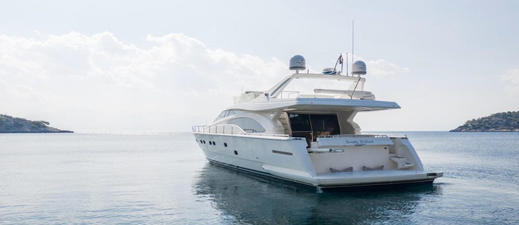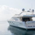A perfect choice for daily or weekly charter in the Cyclades ! Ample leisure bow area, spacious flybridge and aft deck, along with a professional crew of three, that will greet you on board.