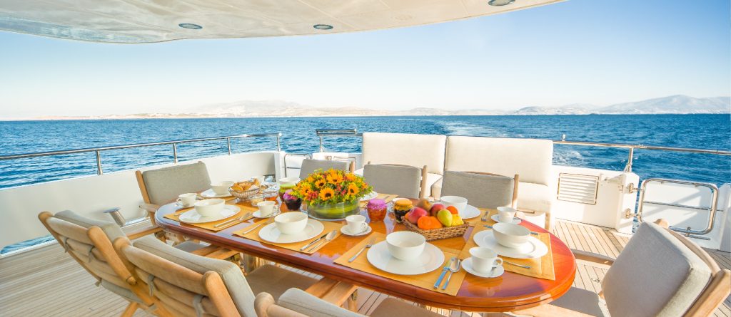 Our Codecasa 113’ is the ultimate symbol of meticulous craftmanship and ergonomic virtues, making it the ideal home away from home. While at sea, choose from a diverse list of activities including cooking lessons, wine and cheese tasting and fishing – to name a few. Meals are prepared following the principles and methods of estiatorio Milos, with a strong focus on the quality of raw materials in its surroundings. The itinerary is at the discretion of guests and captain Sifis Kontorinis is always happy to propose exciting destinations along the Aegean Sea.
