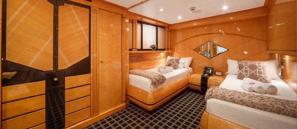 Milos at Sea has the capacity to accommodate up to 10 guests overnight in four staterooms. All equipped with ensuite bathrooms, Milos at Sea boasts a Master Suite, one VIP stateroom and two Twin cabins each equipped with an extra Pullman berth.